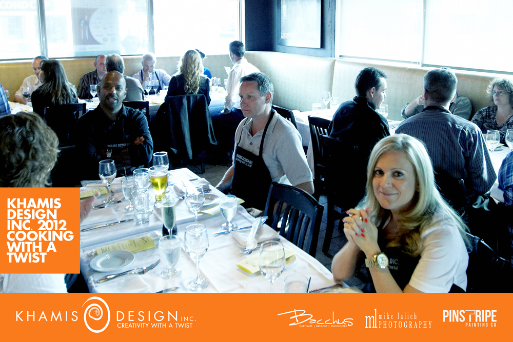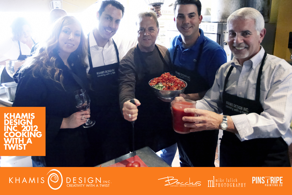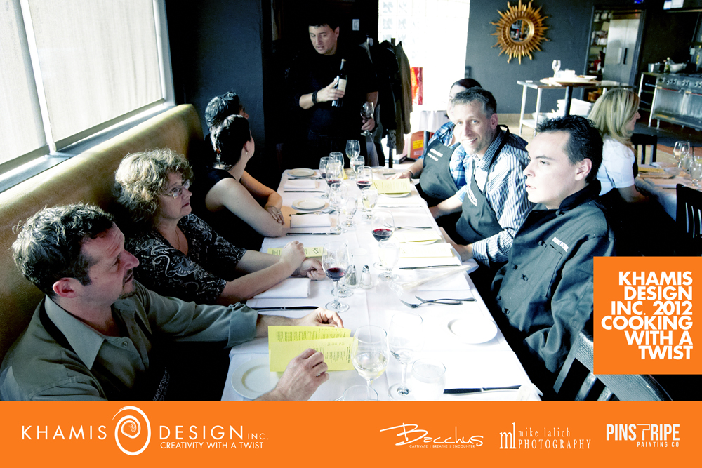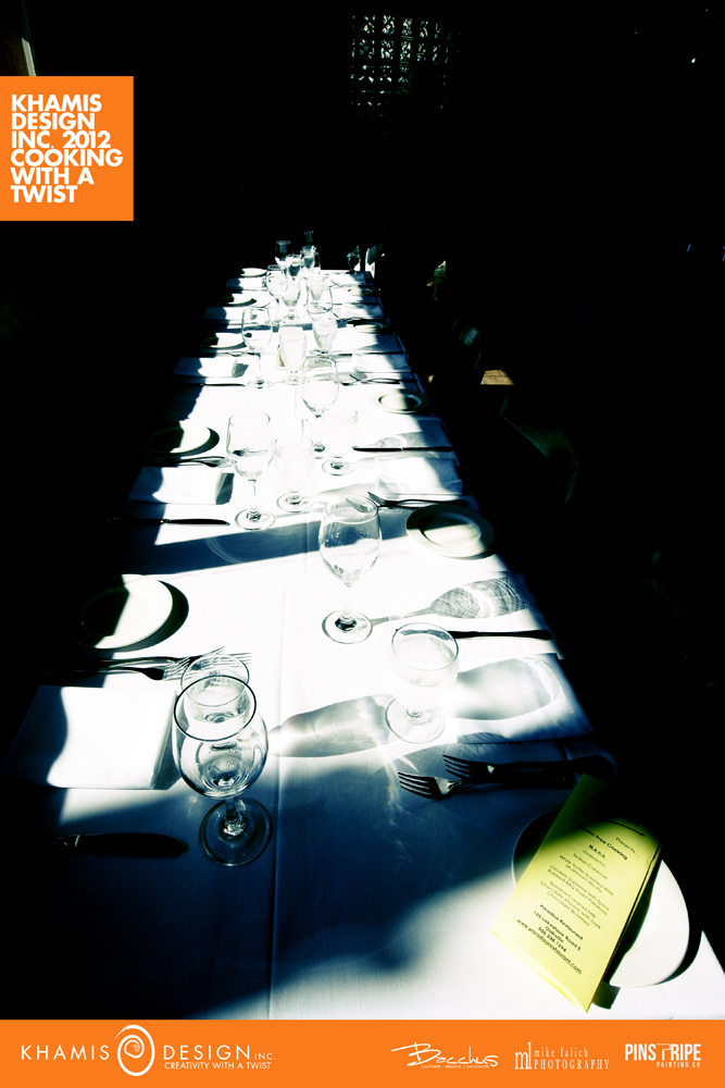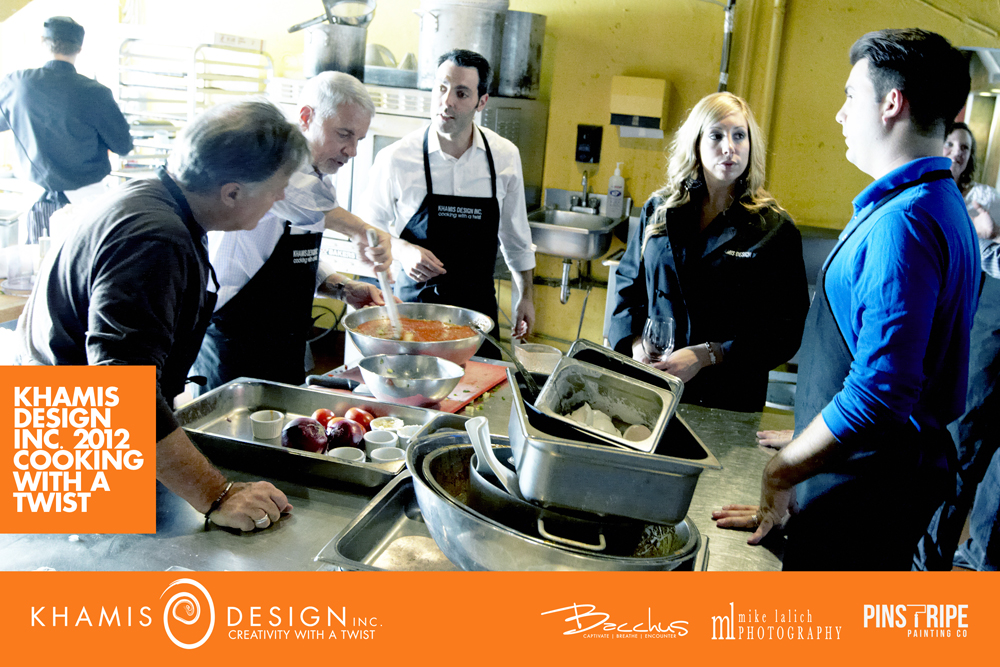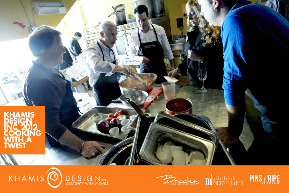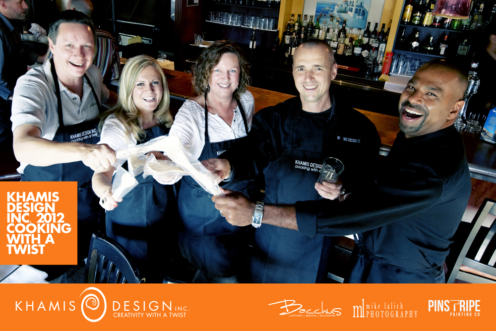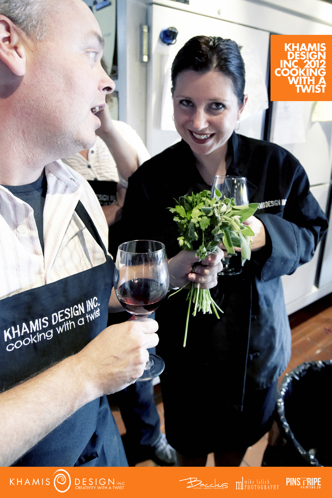 This year we celebrated with our “COOKING WITH A TWIST” event that put four teams to the test with a delicious Gluten Free meal. Four teams entered the kitchen, but only one was victorious (however we all got to eat!). Who knew that if you gathered such a great group of people together that they’d cook you dinner!!!A special thank you to: Peter Kline and Shayne Cooke, of Bacchus Sommelier Services, for being our Grand Prize sponsor and giving away some amazing vintages (unfortunately not to Tracy or I); to Mike Lalich, for shooting the event and providing much appreciated support and humour; to Mark Scutellà, of Pinstripe Painting for supplying the wine to complement our delicious dinner; and to Karen Brenner for making our teams look good in their aprons and chef jackets.