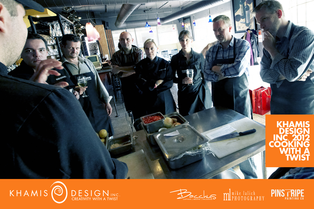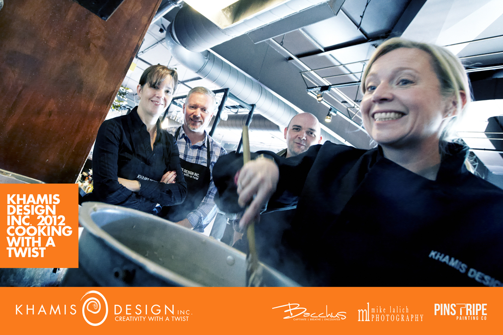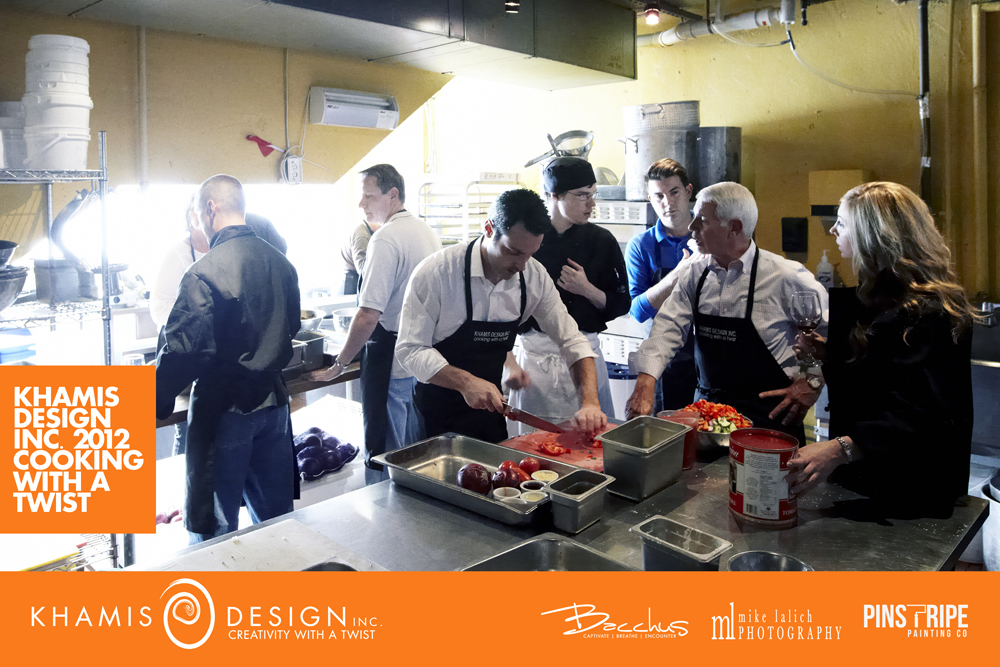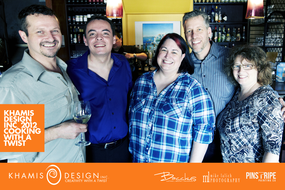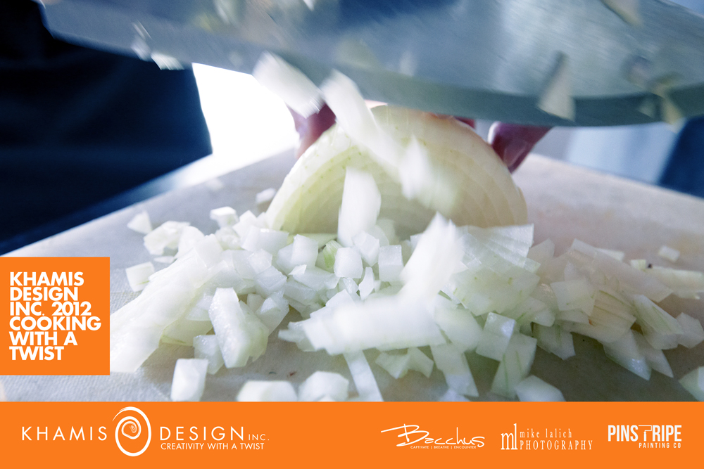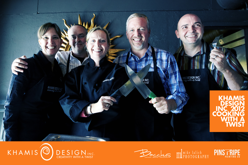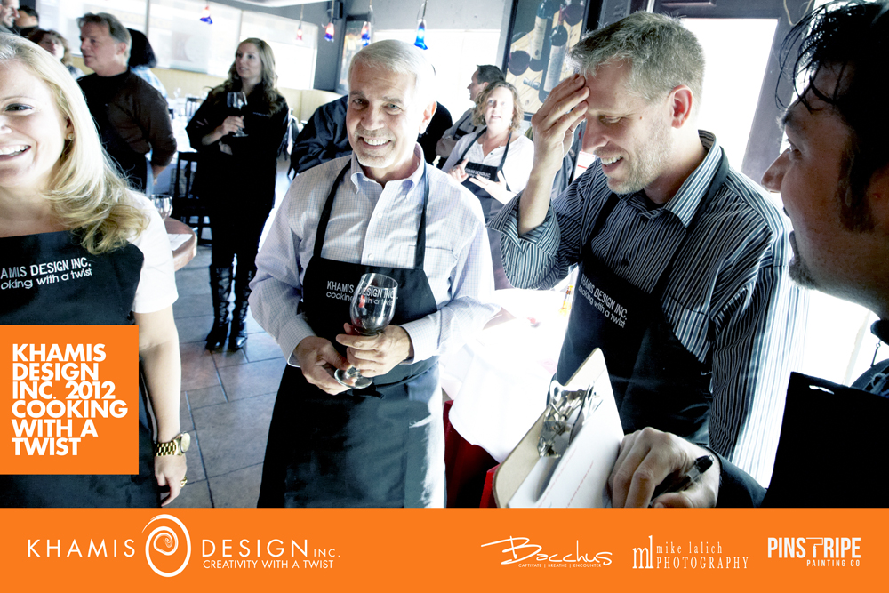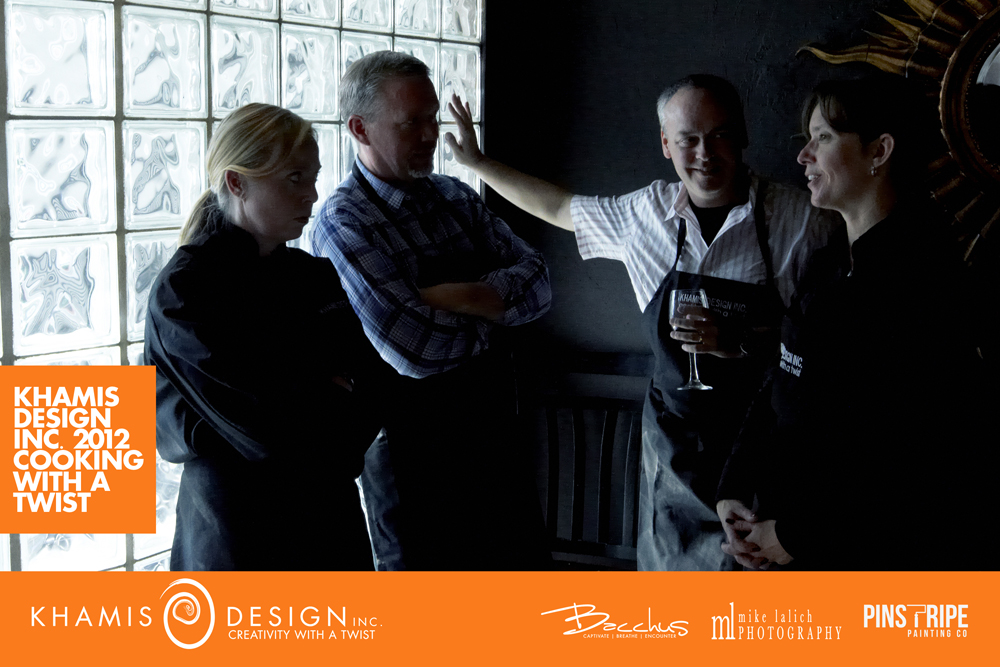 This year we celebrated with our “COOKING WITH A TWIST” event that put four teams to the test with a delicious Gluten Free meal. Four teams entered the kitchen, but only one was victorious (however we all got to eat!). Who knew that if you gathered such a great group of people together that they’d cook you dinner!!!A special thank you to: Peter Kline and Shayne Cooke, of Bacchus Sommelier Services, for being our Grand Prize sponsor and giving away some amazing vintages (unfortunately not to Tracy or I); to Mike Lalich, for shooting the event and providing much appreciated support and humour; to Mark Scutellà, of Pinstripe Painting for supplying the wine to complement our delicious dinner; and to Karen Brenner for making our teams look good in their aprons and chef jackets.