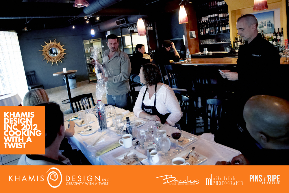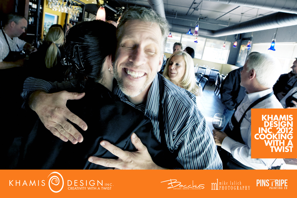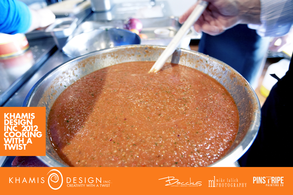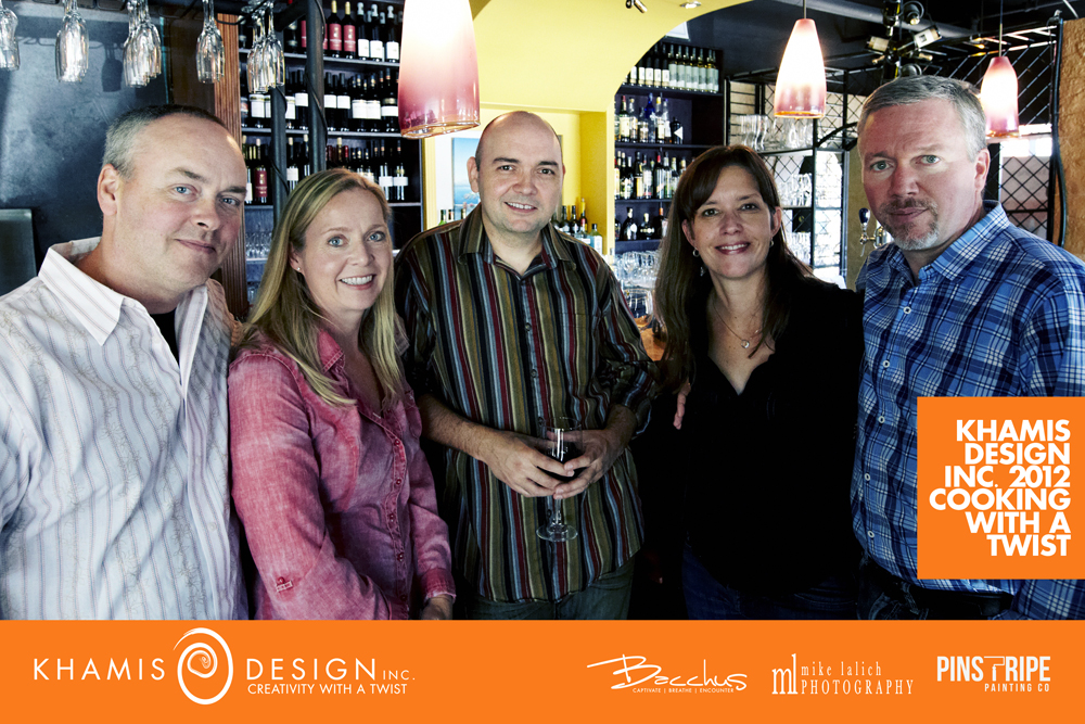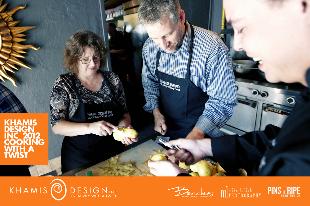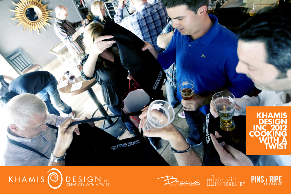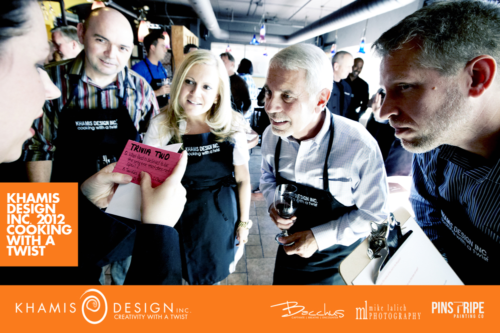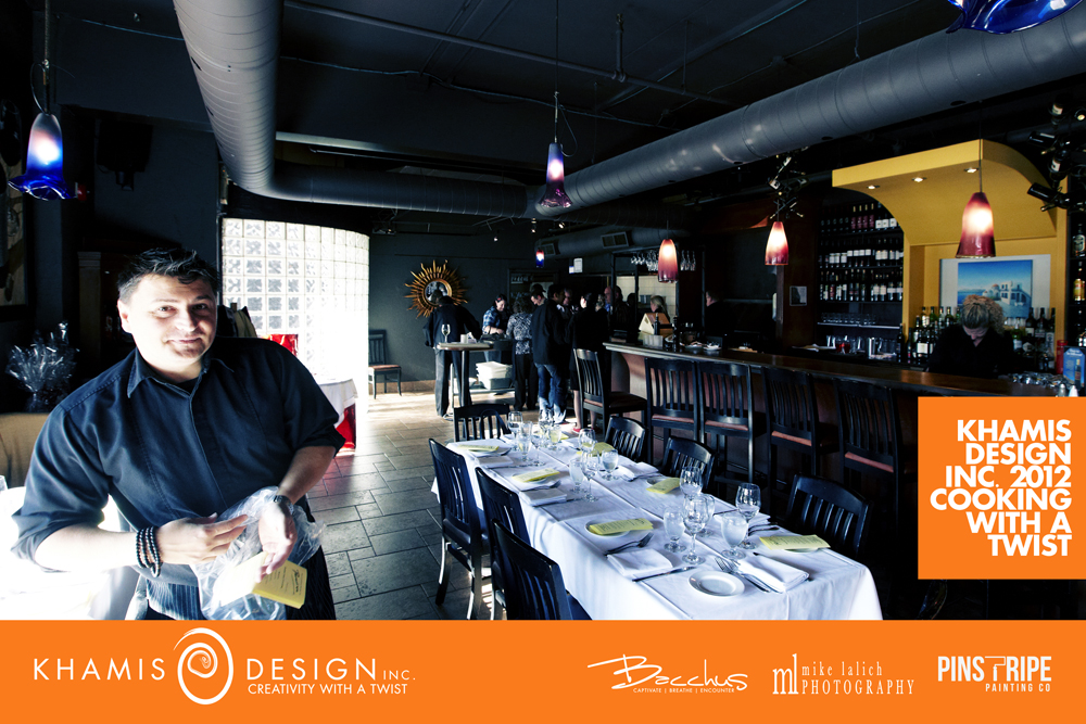 This year we celebrated with our “COOKING WITH A TWIST” event that put four teams to the test with a delicious Gluten Free meal. Four teams entered the kitchen, but only one was victorious (however we all got to eat!). Who knew that if you gathered such a great group of people together that they’d cook you dinner!!!A special thank you to: Peter Kline and Shayne Cooke, of Bacchus Sommelier Services, for being our Grand Prize sponsor and giving away some amazing vintages (unfortunately not to Tracy or I); to Mike Lalich, for shooting the event and providing much appreciated support and humour; to Mark Scutellà, of Pinstripe Painting for supplying the wine to complement our delicious dinner; and to Karen Brenner for making our teams look good in their aprons and chef jackets.