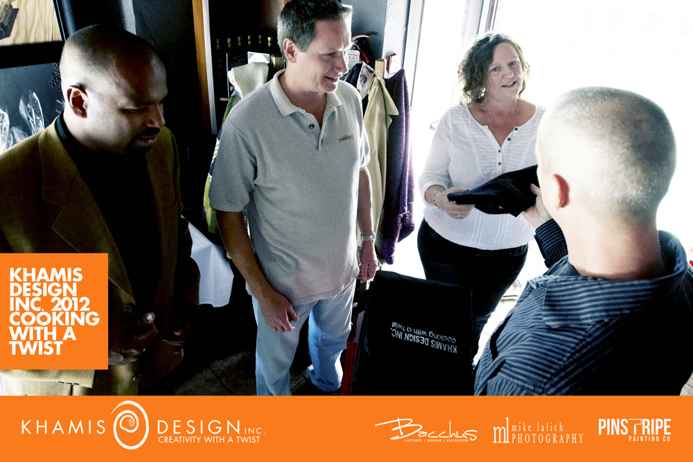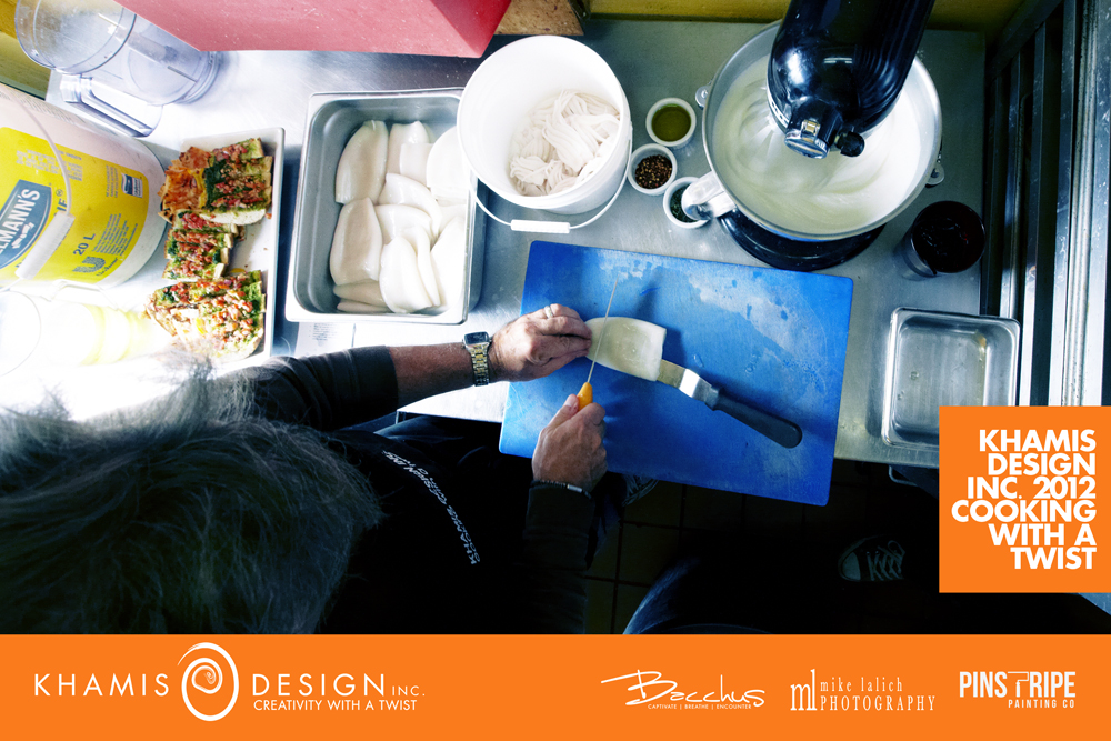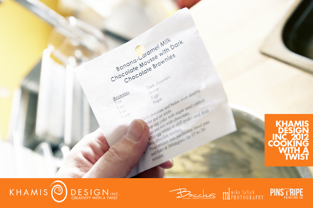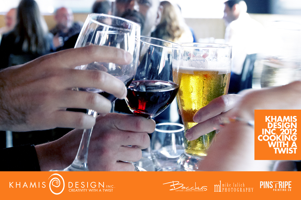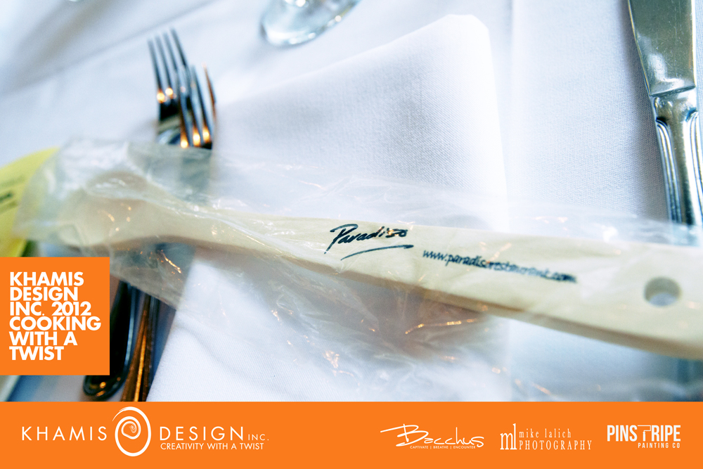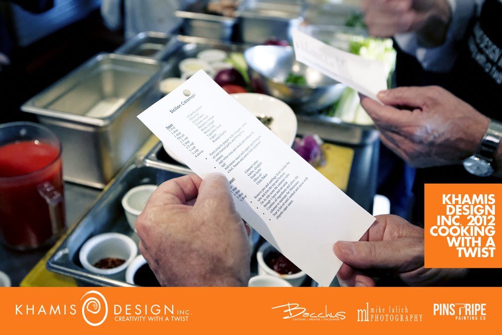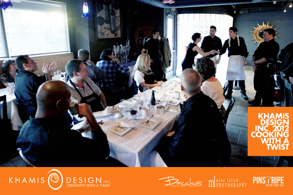This year we celebrated with our “COOKING WITH A TWIST” event that put four teams to the test with a delicious Gluten Free meal. Four teams entered the kitchen, but only one was victorious (however we all got to eat!). Who knew that if you gathered such a great group of people together that they’d cook you dinner!!!A special thank you to: Peter Kline and Shayne Cooke, of Bacchus Sommelier Services, for being our Grand Prize sponsor and giving away some amazing vintages (unfortunately not to Tracy or I); to Mike Lalich, for shooting the event and providing much appreciated support and humour; to Mark Scutellà, of Pinstripe Painting for supplying the wine to complement our delicious dinner; and to Karen Brenner for making our teams look good in their aprons and chef jackets.