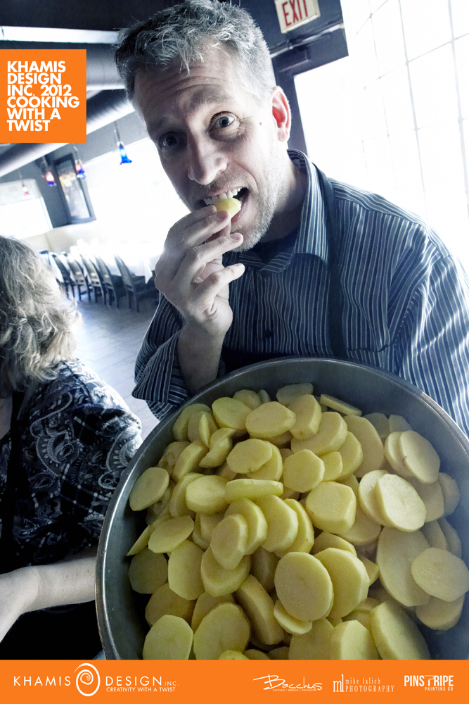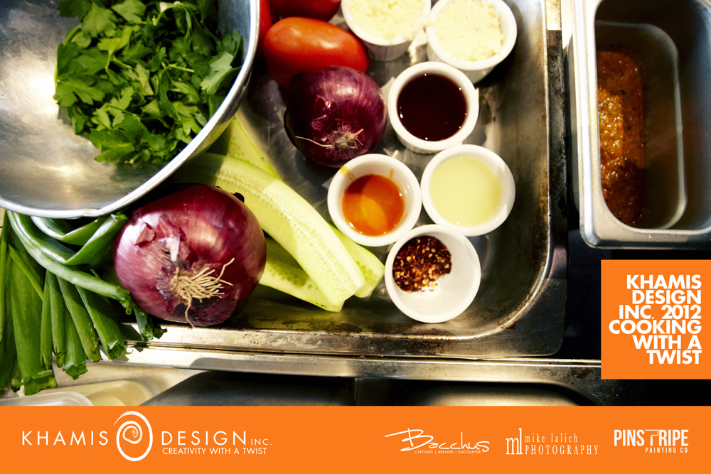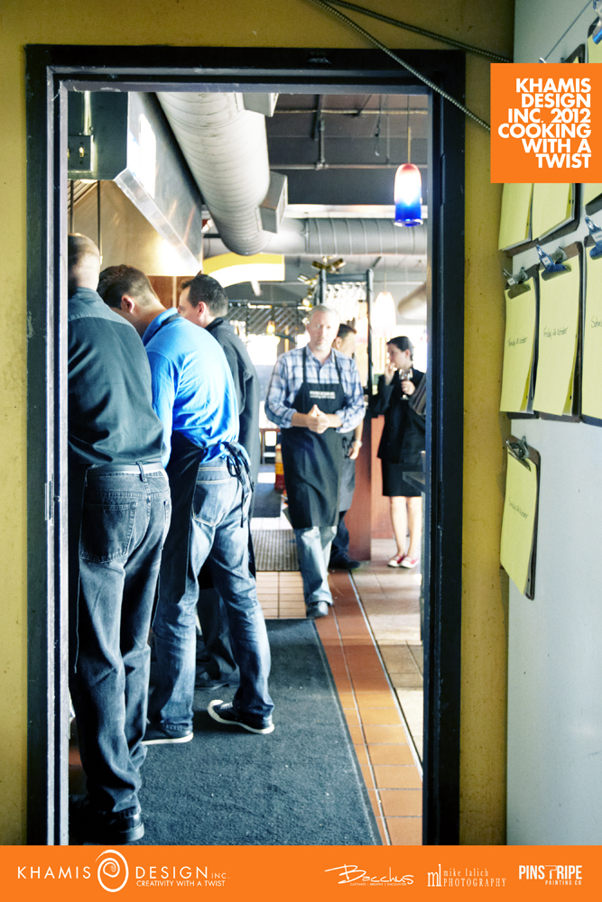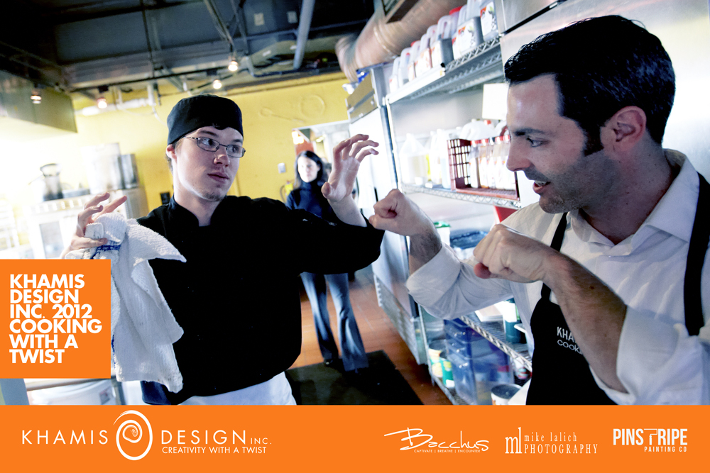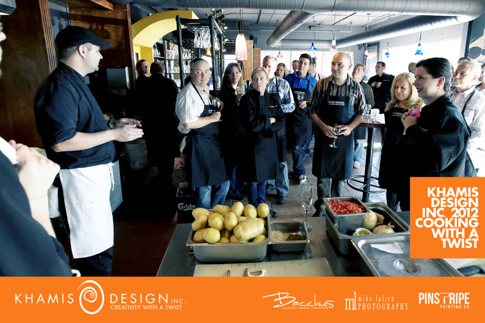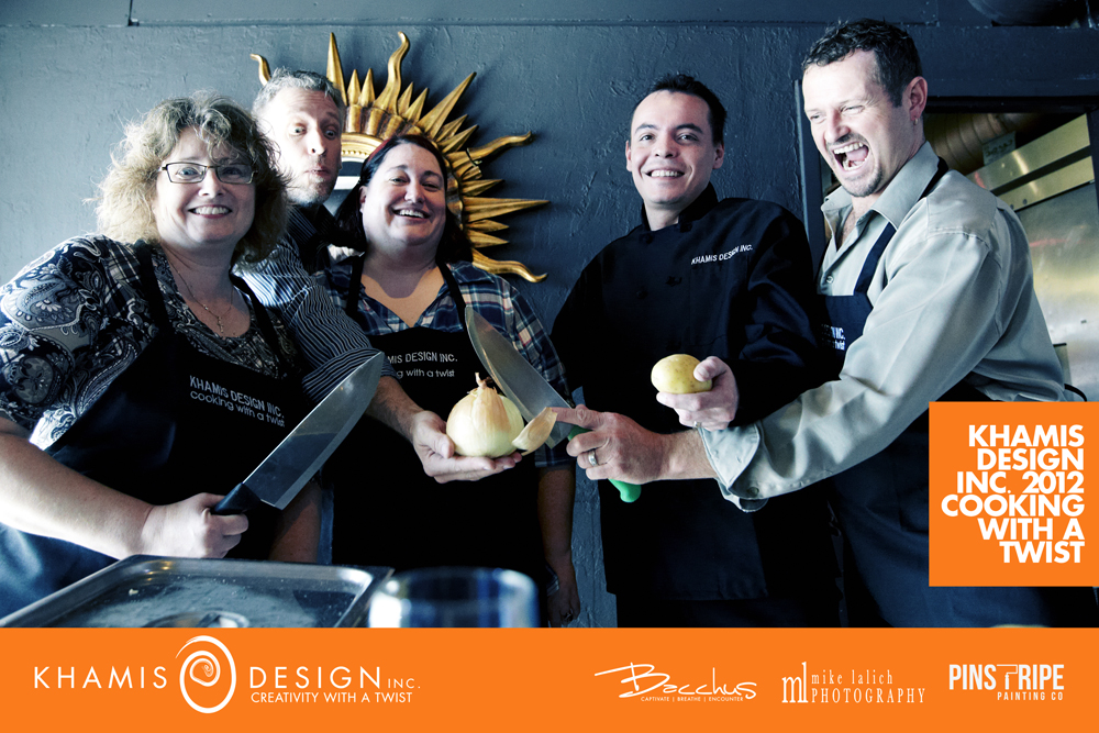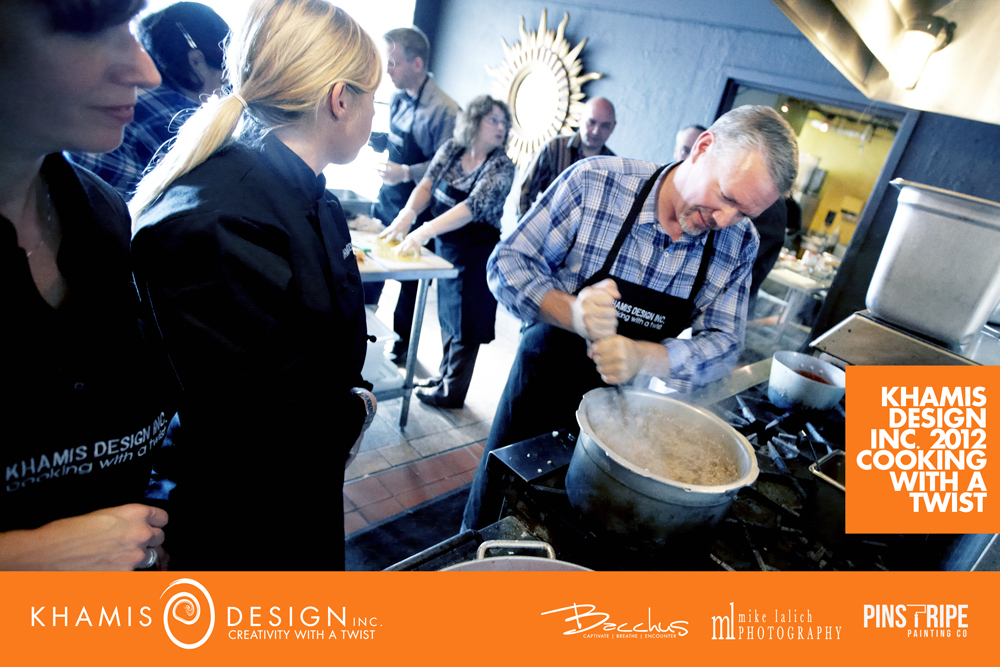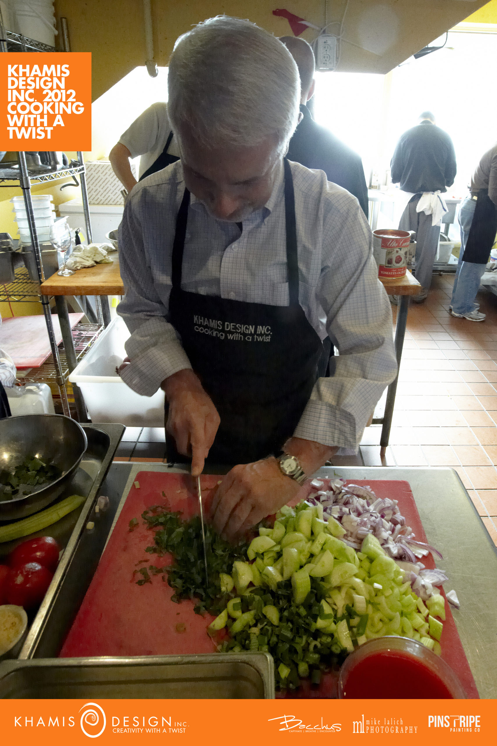This year we celebrated with our “COOKING WITH A TWIST” event that put four teams to the test with a delicious Gluten Free meal. Four teams entered the kitchen, but only one was victorious (however we all got to eat!). Who knew that if you gathered such a great group of people together that they’d cook you dinner!!!A special thank you to: Peter Kline and Shayne Cooke, of Bacchus Sommelier Services, for being our Grand Prize sponsor and giving away some amazing vintages (unfortunately not to Tracy or I); to Mike Lalich, for shooting the event and providing much appreciated support and humour; to Mark Scutellà, of Pinstripe Painting for supplying the wine to complement our delicious dinner; and to Karen Brenner for making our teams look good in their aprons and chef jackets.