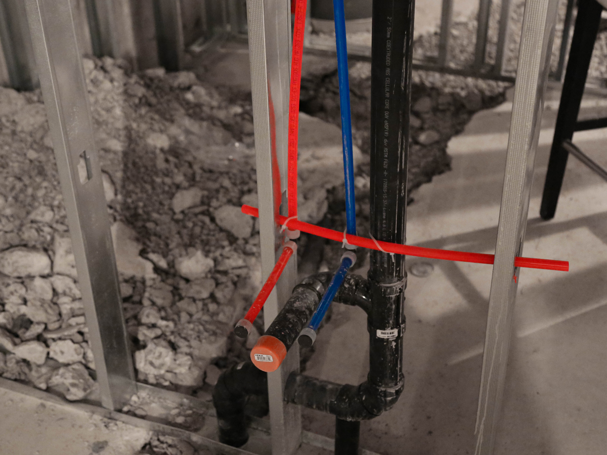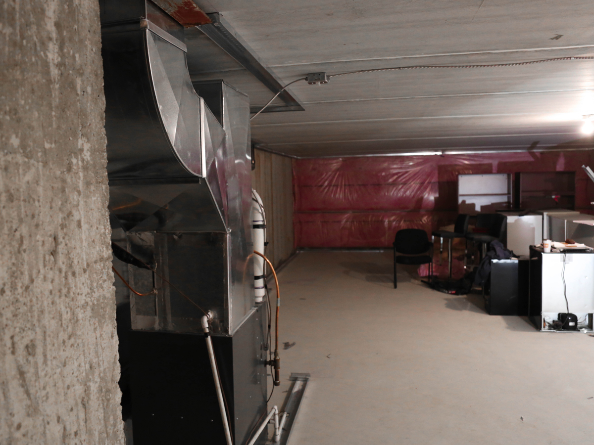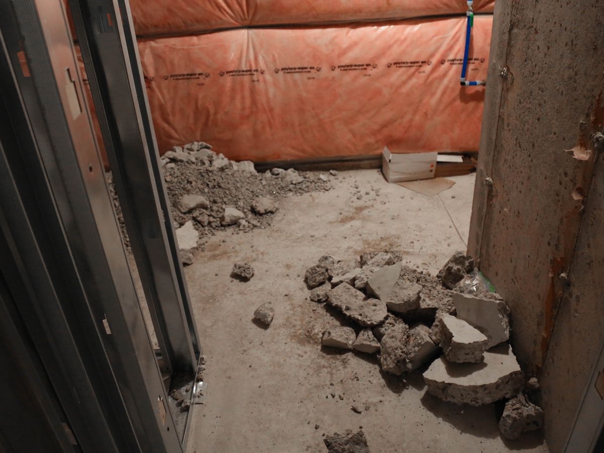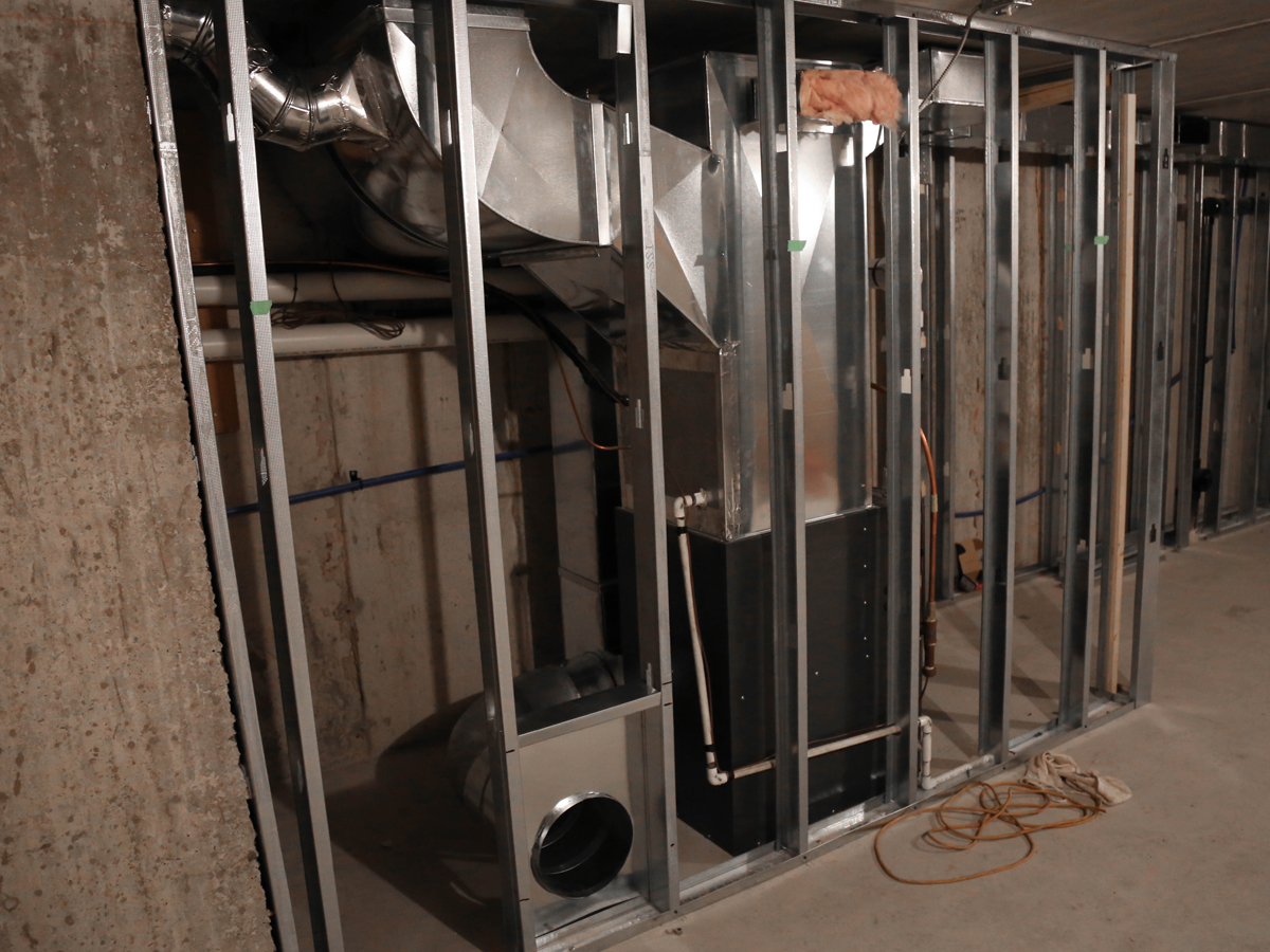 January brought with it the start to plumbing, hydro and HVAC. And much dust and noise! Phase 1 – Part B was off and running. The men in trucks descended and the stuff that lives behind our walls started to take shape, and pound holes in our cement floors. And everything was covered in a lovely layer of dust, so you couldn’t tell where the snow stopped and the dust started.