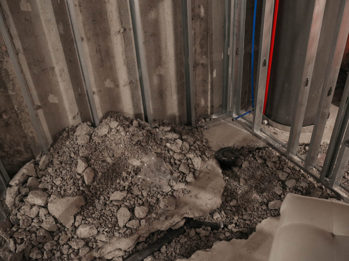 We got ceilings and floors, and bathrooms with fixtures, pot lights and wall lights and even more dust. Seriously where does all the dust come from?
